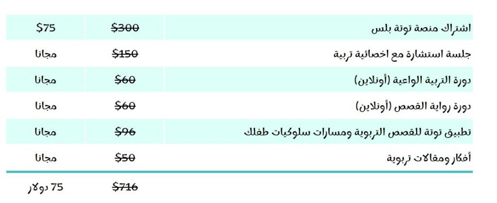 إننا في توتة بلس نعتبر التربية الواعية رحلة حياتية مُلهمة، تحدث أثرًا إيجابيًا بارزًا في شخصيات أطفالكم وتحدد مستقبلهم. فمن خلال فهمنا لاحتياجاتهم العاطفية والعقلية نقدّم لكم أدوات تربوية مبتكرة تحدث نقلة نوعية في حياتكم الأسرية. ولاعتقادنا الأكيد أنّ التربية الواعية استثمار ناجح يستمر مدى الحياة ندعوكم لمشاركتنا ذات الهدف وذات المستقبل المشرق لأطفالنا وأطفالكم. استثمر اليوم لتجني الفوائد غدًا!